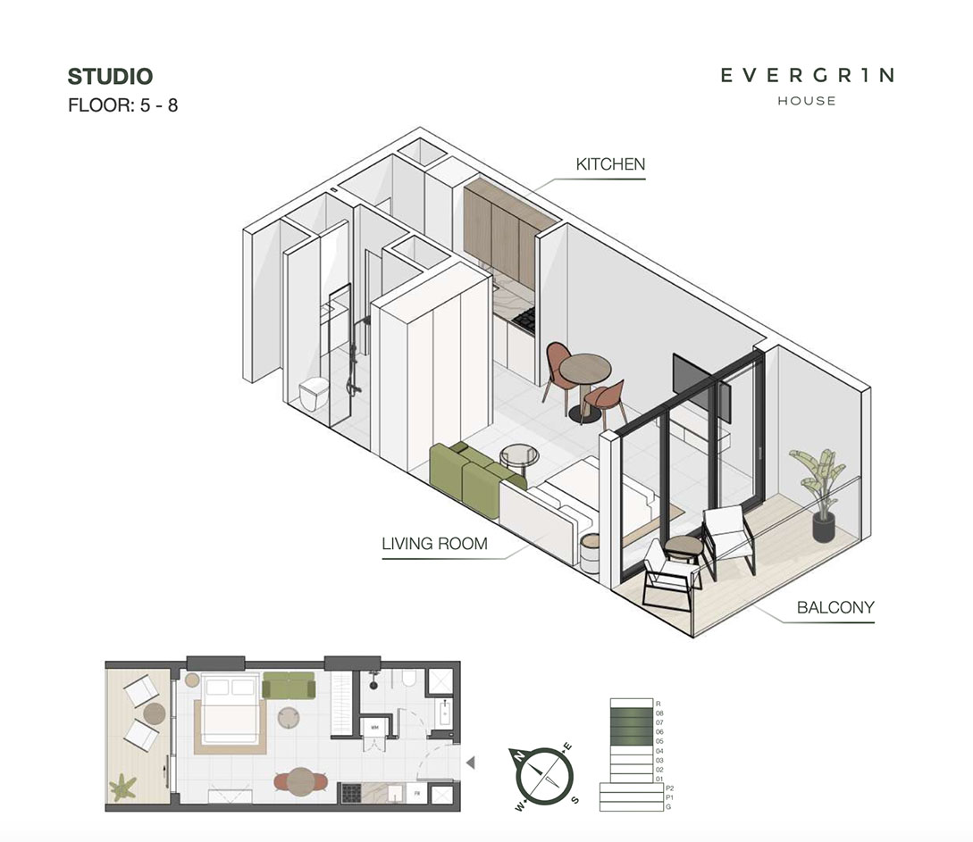 At EVERGR1N, we seamlessly merge urban life with nature, creating a green oasis throughout the building.