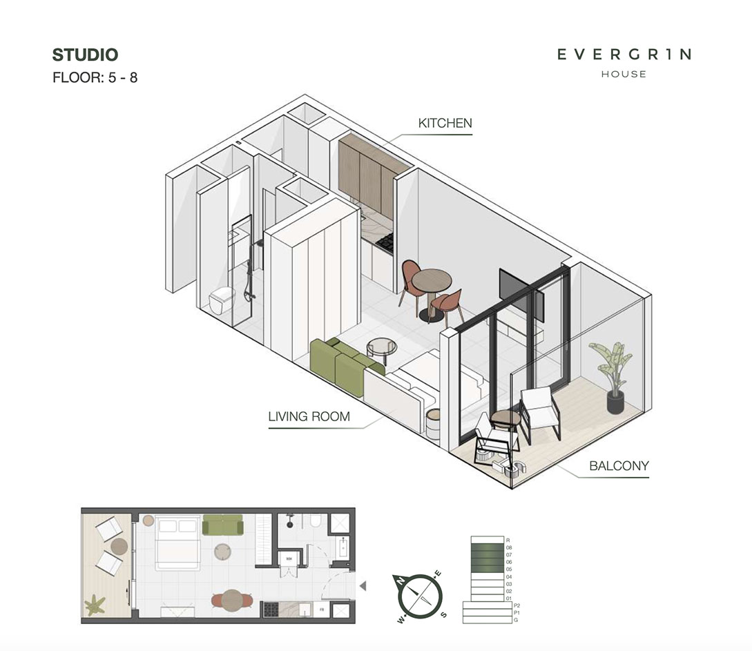 At EVERGR1N, we seamlessly merge urban life with nature, creating a green oasis throughout the building.