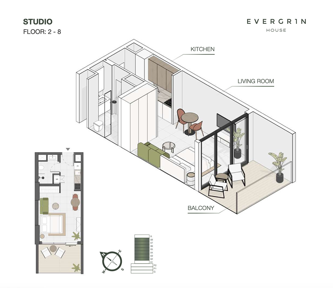 At EVERGR1N, we seamlessly merge urban life with nature, creating a green oasis throughout the building.