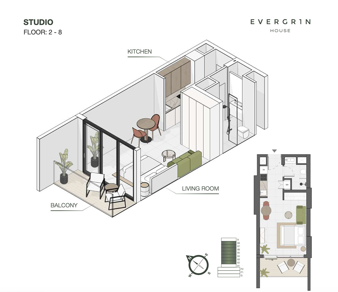At EVERGR1N, we seamlessly merge urban life with nature, creating a green oasis throughout the building.